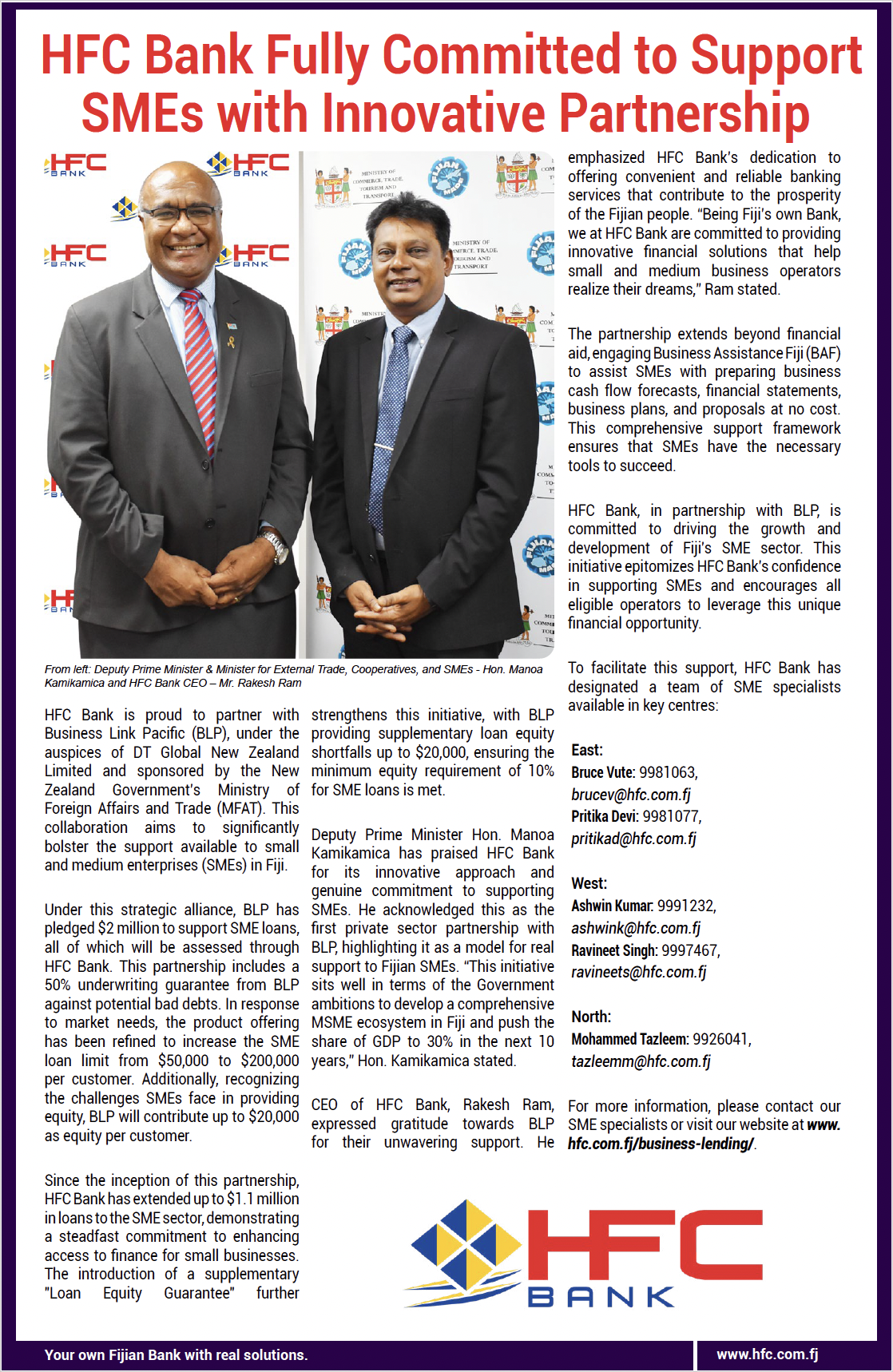 Key Disclosure Statement Year ending 30 June 2024July 1, 2024HFC Bank Declares Over $60 Million Dividend in the Past Two YearsOctober 11, 2024 Published by admin on August 2, 2024 Share0 Related postsOctober 13, 2025HFC Bank Pays $100 Million In Dividends To Fijians Over The Last Three YearsRead moreSeptember 3, 2025HFC Bank Renews Naming Rights to HFC Bank Stadium for 10 YearsRead moreJuly 25, 2025HFC Bank Key Sponsor of a “First-of-its-Kind” Innovation HubRead more
